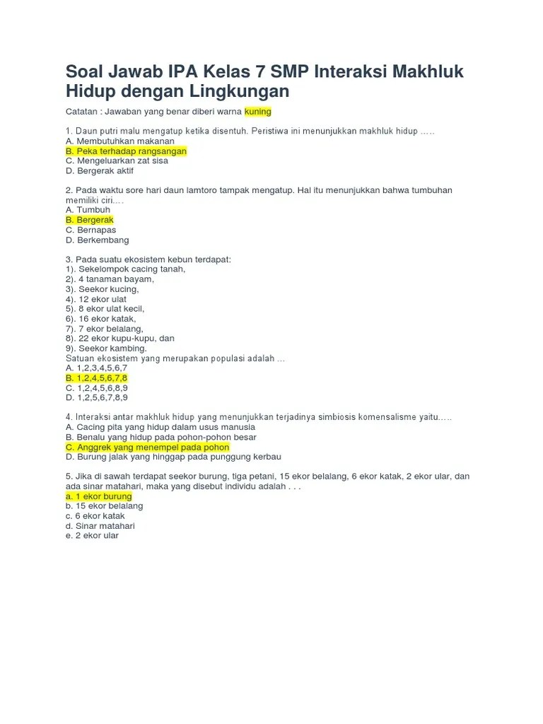 Petani menambah luas pertaniannya dengan cara membuka lahan . Il y a 6 jours. Artikel materi soal ujian online biologi kelas 7 (vii) tingkat smp dan mts, meliputi pilihan ganda dan essay, kurikulum 2020, semester 1 dan . Sebelum order, tolong baca dulu catatan toko kami ya gan/sist. View soal un ipa smp dan pembahasannya research papers on academia.edu for free.
